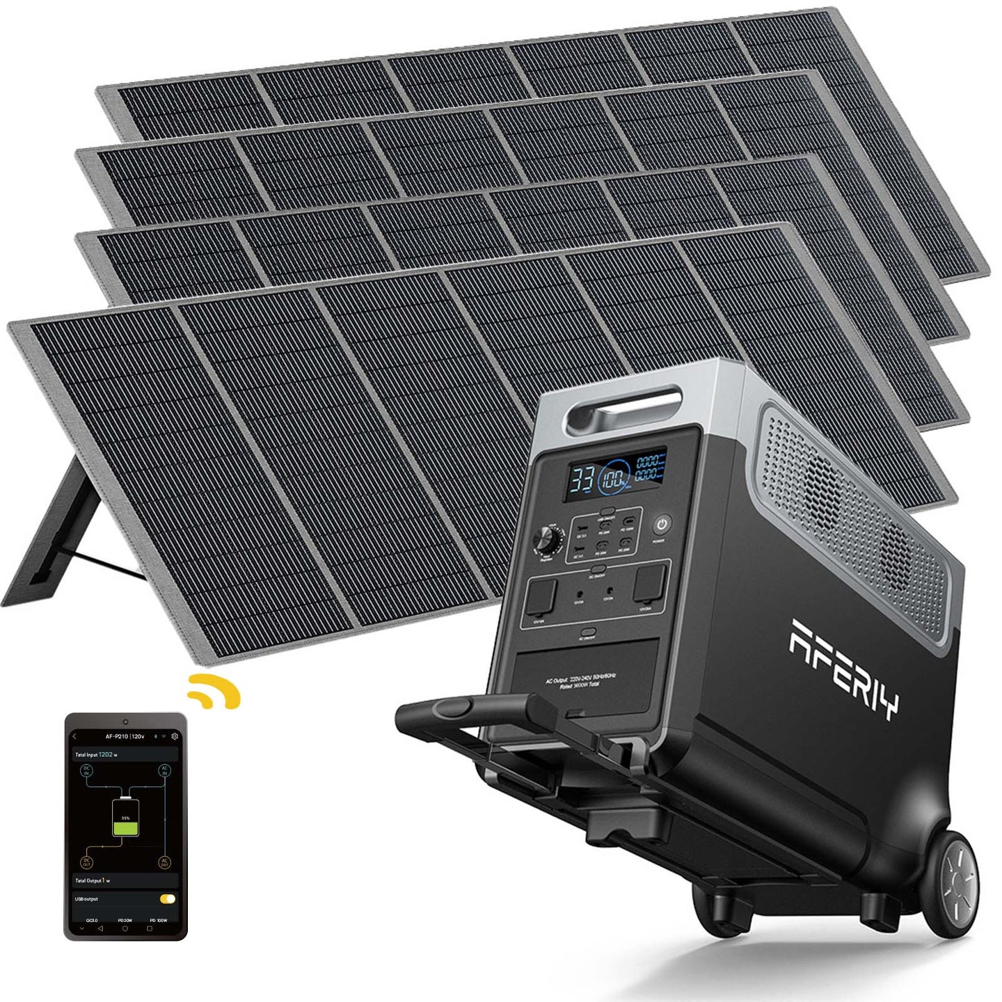 The AFERIY P310 3600W portable power stations support 4 recharging ways. It can be charged simultaneously via an AC outlet and a solar panel, fast charging from 0% to 99% in 1.5 hours. It supports solar charging, and it can be fully recharged within 2.5 hours via a 1500W solar panel, or via a 120W car outlet in 32 hours.